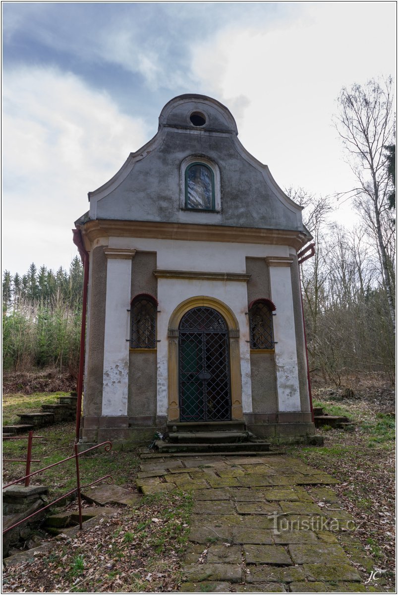 Možná známější je tato kaplička pod názvem Kaple Panny Marie Lurdské. Takto je i označena na Mapy.cz. Nejspíš dostala toto jméno podle Mariánské studánky, která pod kaplí vyvěrá a jejíž voda je - jak jinak - zázračná. Bohužel v posledních letech je té vody všeobecně dost málo, snad proto nejsou žádné zázraky zdokumentovány.Kaple byla postavena v roce 1890 a o 96 let později se dočkala obnovy, a…