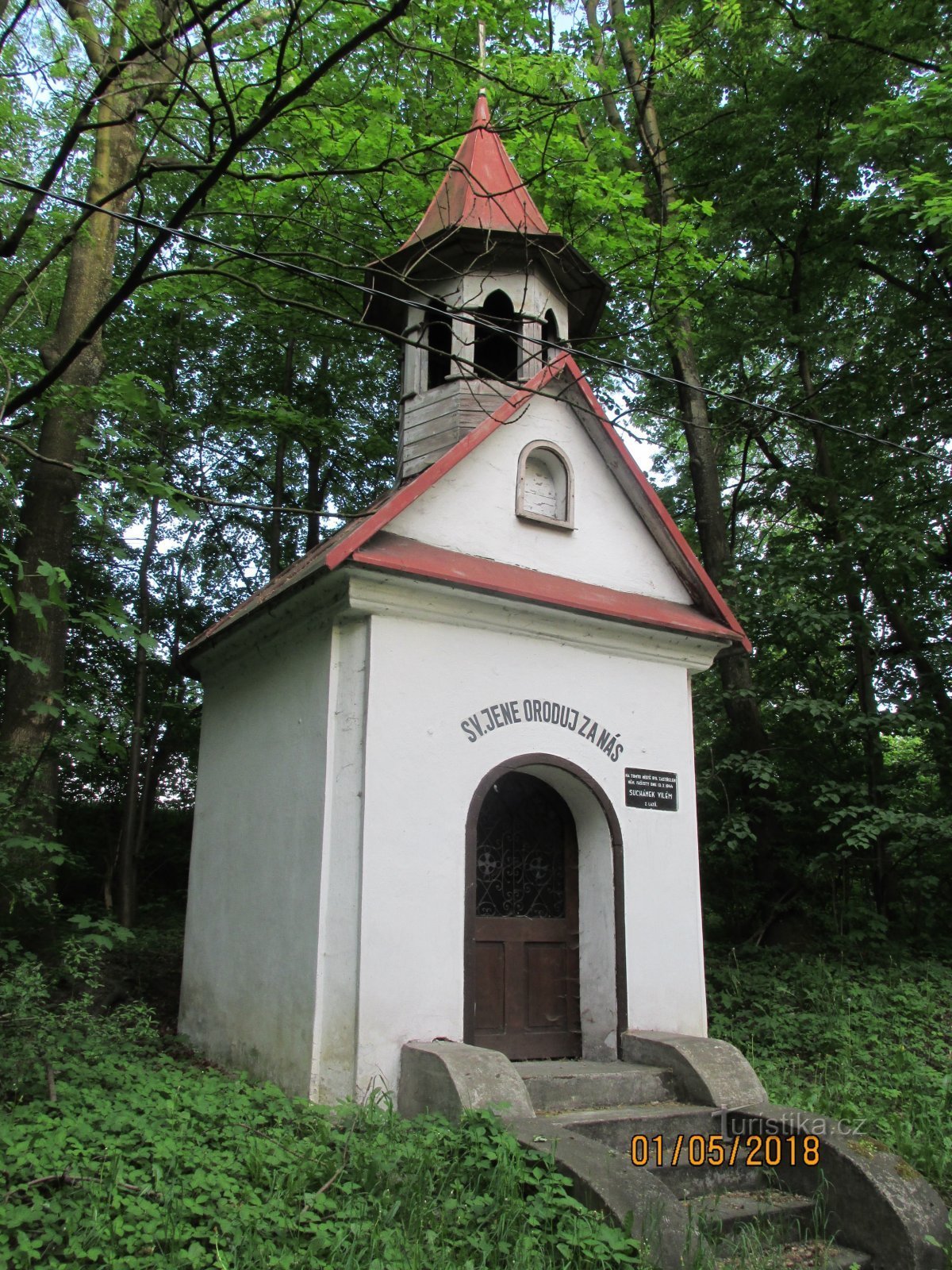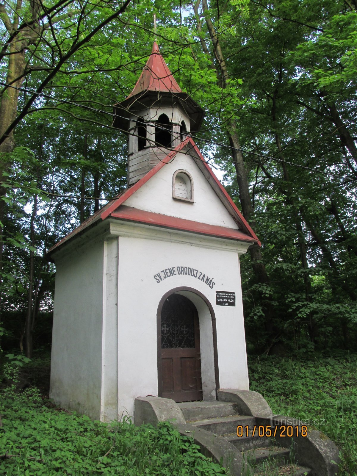 Kaple sv. Jana a pamětní deska v Lazích