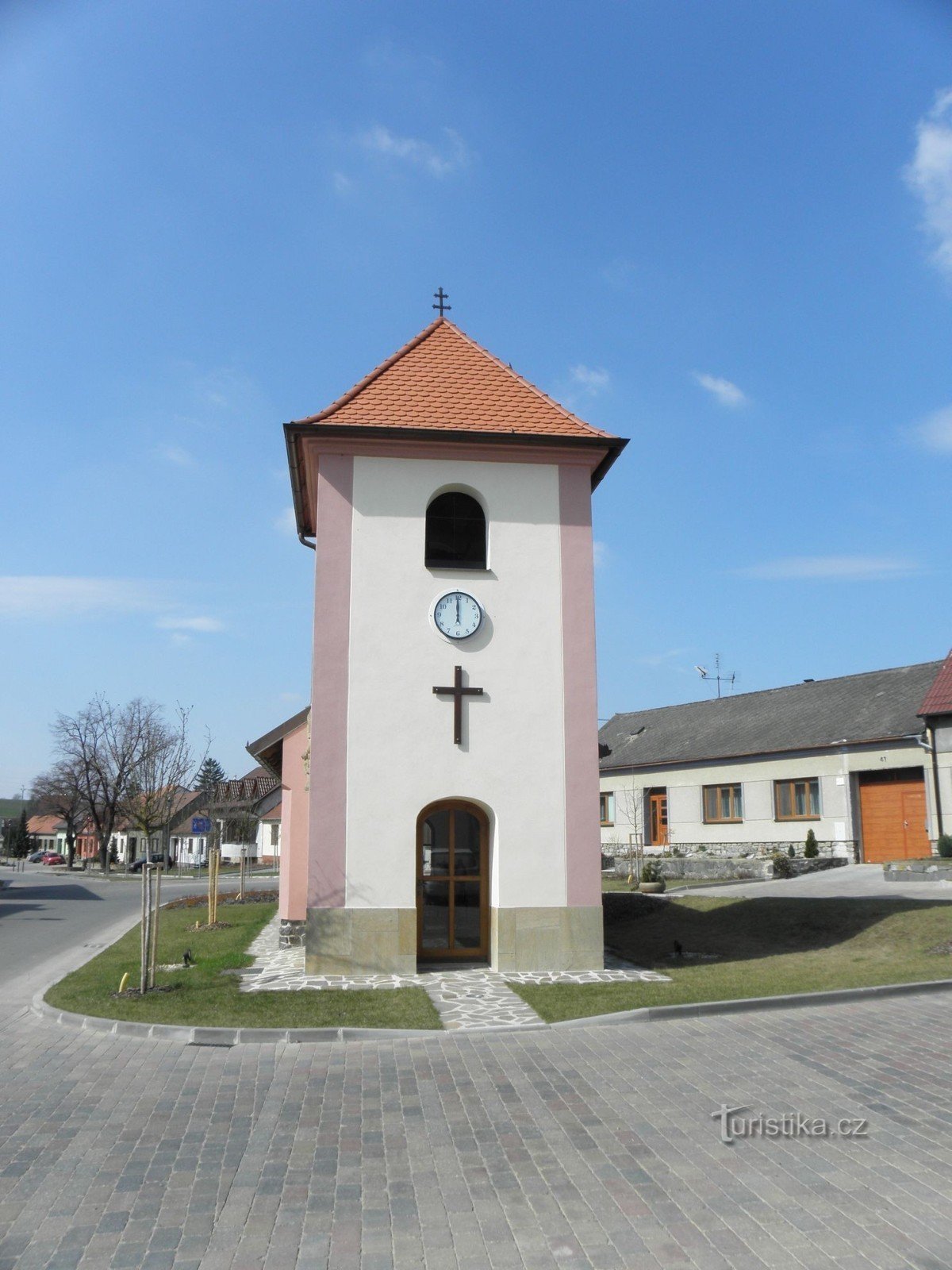 Kaple se Zvonicí se nachází na východní straně návsi u hostince.