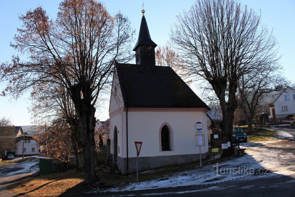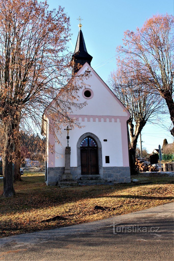 Kaple se nachází v severní části obce, při silnici do vísky Mladice. Byla postavena v roce 1904 a o rok později došlo k jejímu vysvěcení. Zda tomu tak skutečně bylo zpochybňuje datum na stěně kaple (1903 1/3 ). Samotná stavba má obdélníkový půdorys. Na západní straně je uzavřena půlkruhovým presbytářem. Průčelí na východní straně má několik zdobných prvků a je ukončené štítem. Nad střechou je…