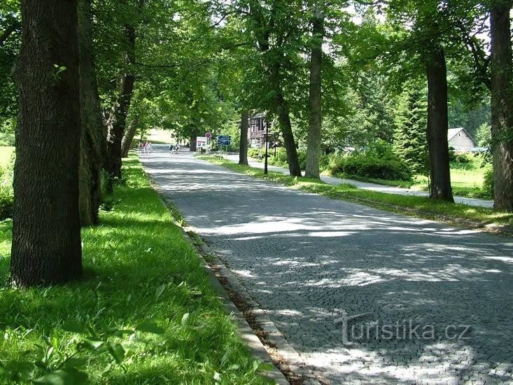 Rozcestí je umístěno u křižovatky hlavních cest na okraji lázeňské obce Karlovy Studánky. Rozcestník najdeme v sousedství restaurace a záchytného parkoviště u západního okraje Karlovy Studánky. Nedaleko tohoto rozcestí protéká Bílá Opava a v těchto místech je na jejím toku vybudován umělý vodopád. Toto rozcestí je křižovatkou několika turistických tras. Po zelené značce dojdeme na Ovčárnu, vydáme…
