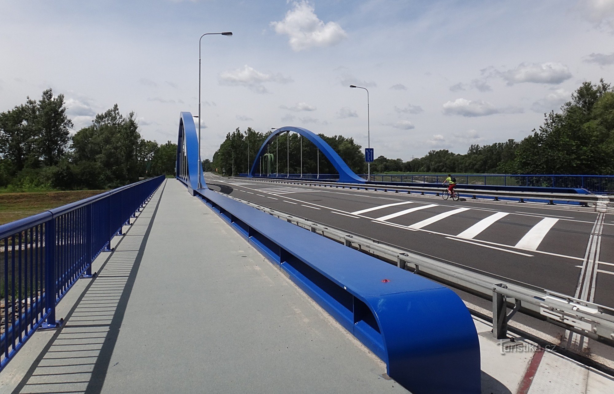 Kam dnes jedeme? Vyjíždíme kolem desáté hodiny na kole z Orlové a cílem naší cesty jsou lázně v Karviné-Darkově. Do Doubravy se snažíme jet po bočních cestách a odtud kousek po hlavní silnici, kolem golfového hřiště v Karviné a po novém mostě, který byl opraven po povodních před dvěma lety. Zastavujeme se na odpočivadle u řeky Olzy a ptáme se na další cestu. Díváme se na poutač cyklostezky…