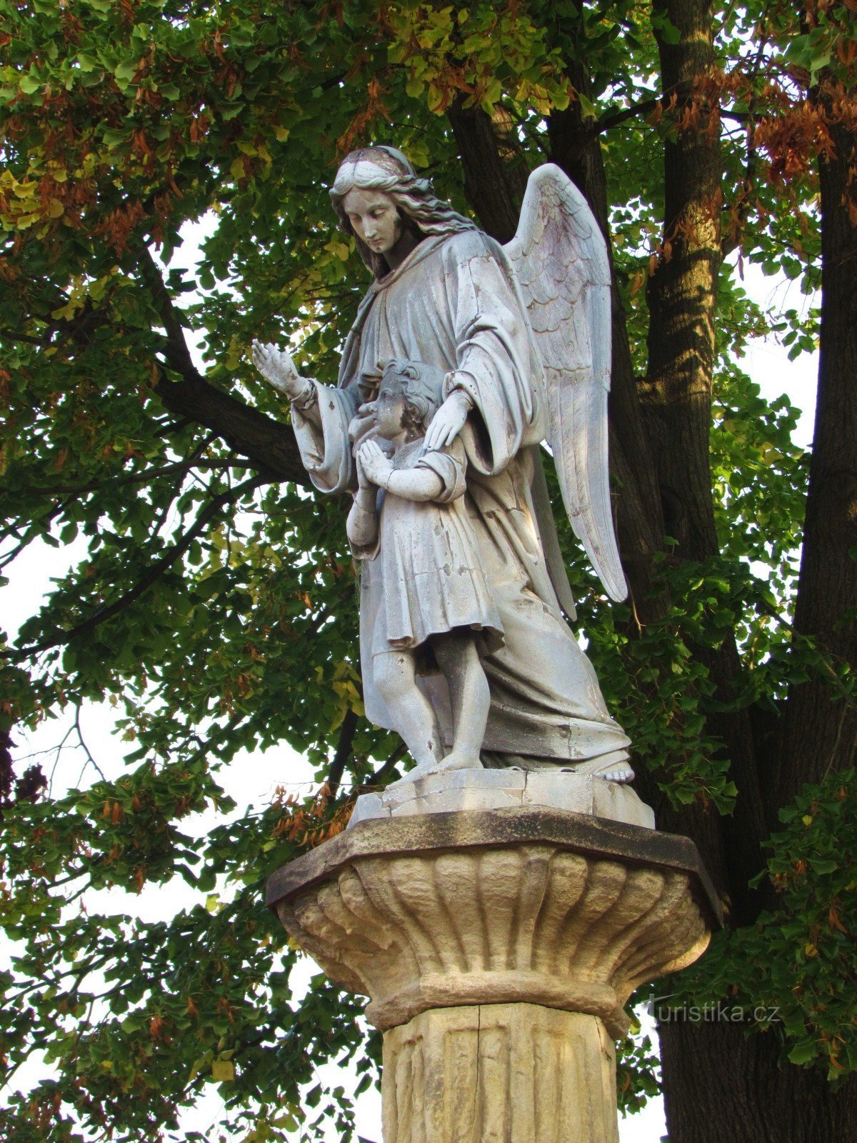 Procházíte - li obcí Starý Jičín, jeho Malebné náměstí zkrášluje dominanta - krásná pískovcová kašna z roku 1856. Zdobí ji kovová plastika - socha Anděla strážného z roku 1836, stojící na stylizovaném sloupu v severovýchodní části náměstí. Vedle historické kašny zaujme památný strom - Lípa Svobody, která byla vysazena roku 1980 na počest samostatného československého státu.