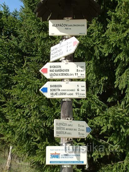Rozcestí se nachází na hlavní cestě vedoucí přes Jeseníky. Po modré značce se dostanete ke známému motorestu Skřítek. Je to asi 2,5 kilometru.