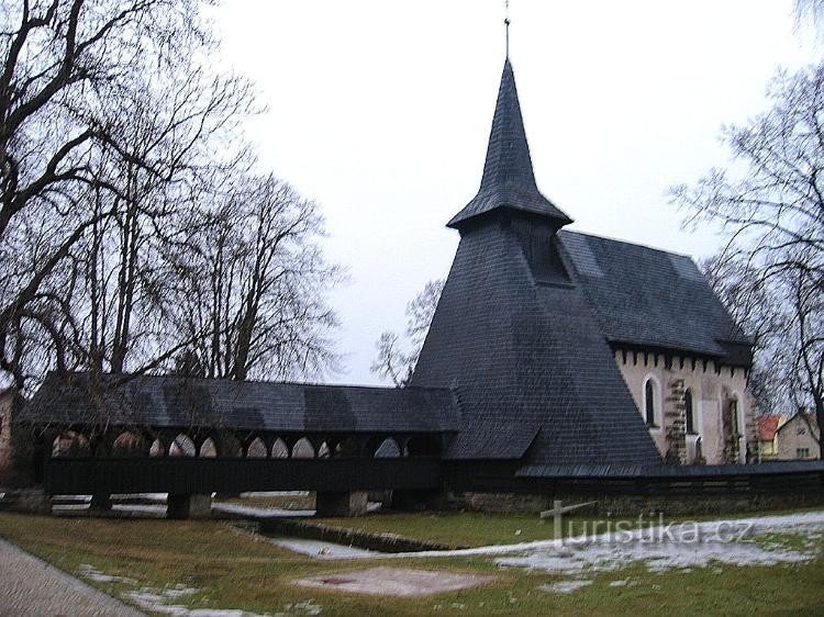 Kostel byl založen v r.1397. Zděná část odpovídá pozdně středověké době. Nad lodí kostela je dřevěný deskový strop. Nad presbytářem se dochovala Křížová…