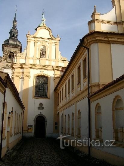 Bývalý františkánský kostel, basilikální, poměrně krátké trojlodí o čtyřech travé s protáhlým presbytářem, uzavřeným pěti stranami osmiúhelníka. Z doby založení koncem 13. století. Klenby z druhé poloviny téhož století. Pozor hodný presbytář vyniká bohatě plastický řešenými konsolami přípor s figurálními a rostlinnými náměty. Okna jsou členěna gotickými kružbami. Na severní straně gotická vět z…