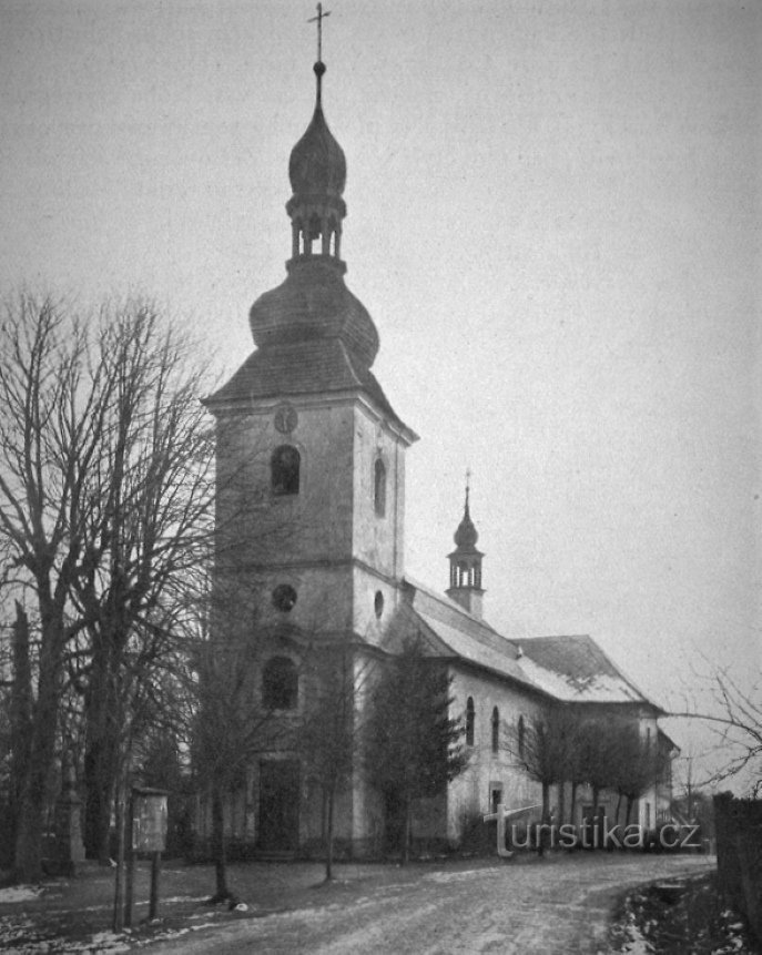 Tato obec původně žádný chrám neměla. Teprve v roce 1752 zde byla zřízena školní budova s kaplí, jež byla roku 1786 přeměněna v kostel (některé prameny hovoří až o roce 1788, ale tento rok nepodporují ani originální německé kroniky a dokumenty, tudíž jde o omyl nebo přebíranou tiskovou chybu), k němuž byla roku 1822 přistavěna věž a sakristie. V roce 1891 zde byla zřízena fara. 21. června 1895…