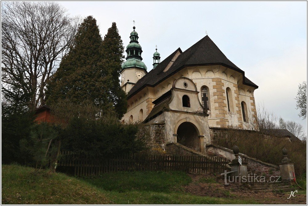 Kostel Nejsvětější Trojice leží prakticky uprostřed této dlouhé obce, na malém…