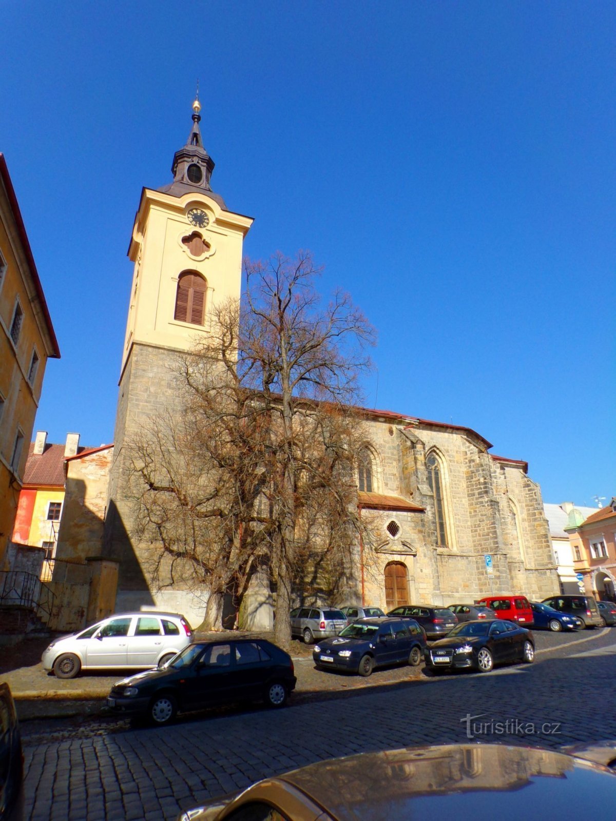 Jde o původní městský farní kostel v gotickém slohu zasvěcený nejprve sv. Jakubu, který je zmíněn v roce 1412 při založení oltáře sv. Mikuláše a Martina Janem Jindřichem z Vartemberka, o 3 roky později při založení oltáře sv. Trojice Mikulášem z Řehče a roku 1416, kdy byl Čeňkem z Veselé a Vartemberka i s hřbitovem, školou a věží odstoupen městu. Jeho základy byly položeny pravděpodobně současně…