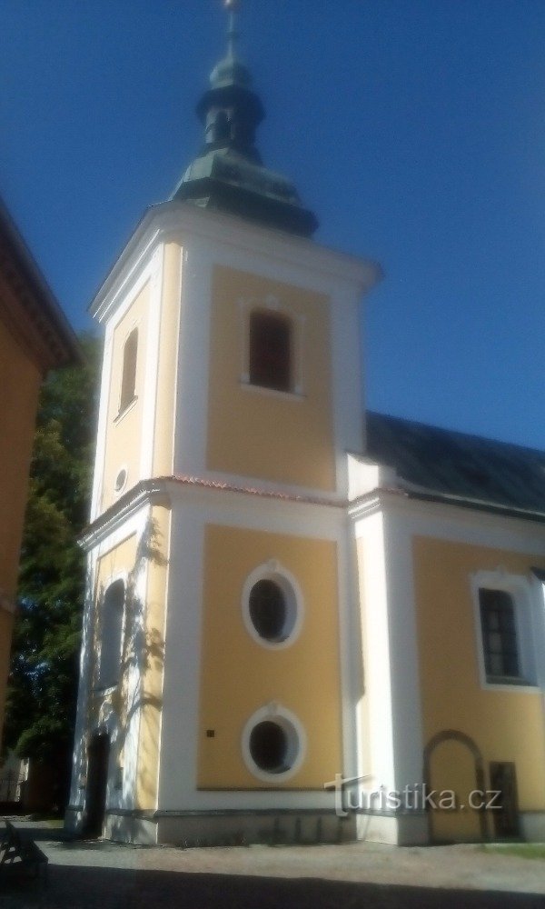 Na místě dnešního kostela stával dřevěný kostelík patrně již ve 12. století. Původně románský kostel byl na konci 14. století přestavěn na gotický. V roce 1646 byl kostel přestavěn barokně a v roce 1774 baly přistavěna kaple na severní straně.