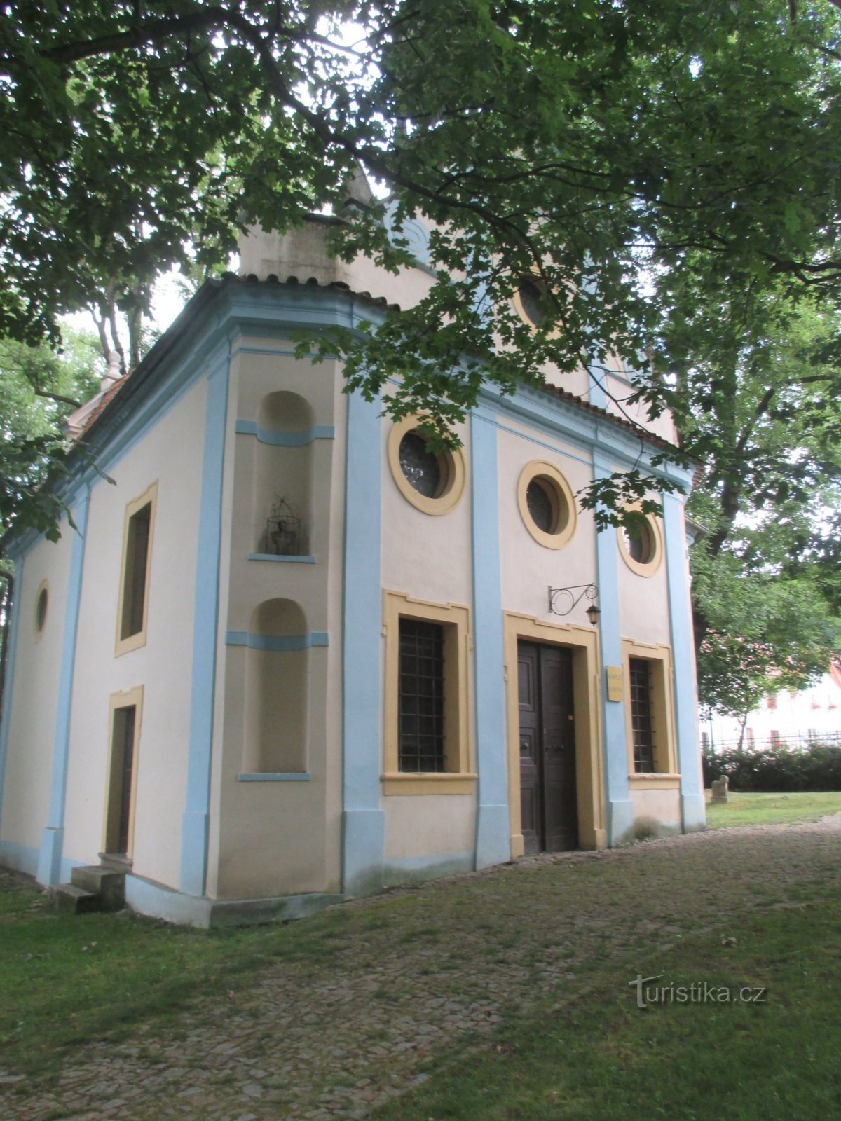 Původně dřevěná hřbitovní kaple byla roku založena 1585 společně s hřbitovem, jenž byl do těchto míst přeložen od kostela sv. Víta. Ke stavbě zděné kaple došlo až roku 1717. Jedná se o jednolodní stavbu s obdélnou lodí, trojbokým presbytářem a osovou východní sakristií. Tříosé západní průčelí s okoseným nárožím vrcholí tabulovým štítem s volutami, ve zkosených nárožích niky. Fasády členěny…
