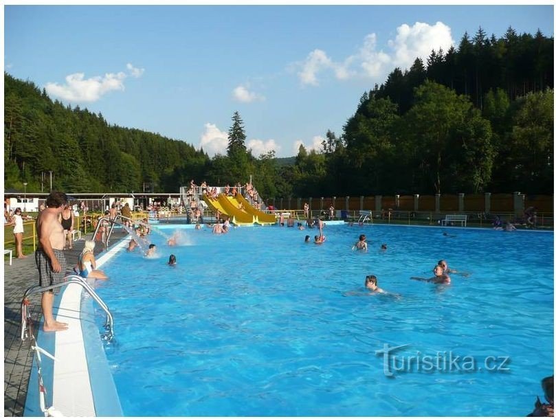 Velmi pěkné koupaliště v turisticky zajímavé oblasti v Obci Rusava se solárním ohřevem vody.