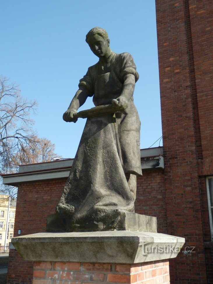 Další místa v okolí - Koželuh a jirchář před bývalou Koželužskou školou v Hradci Králové