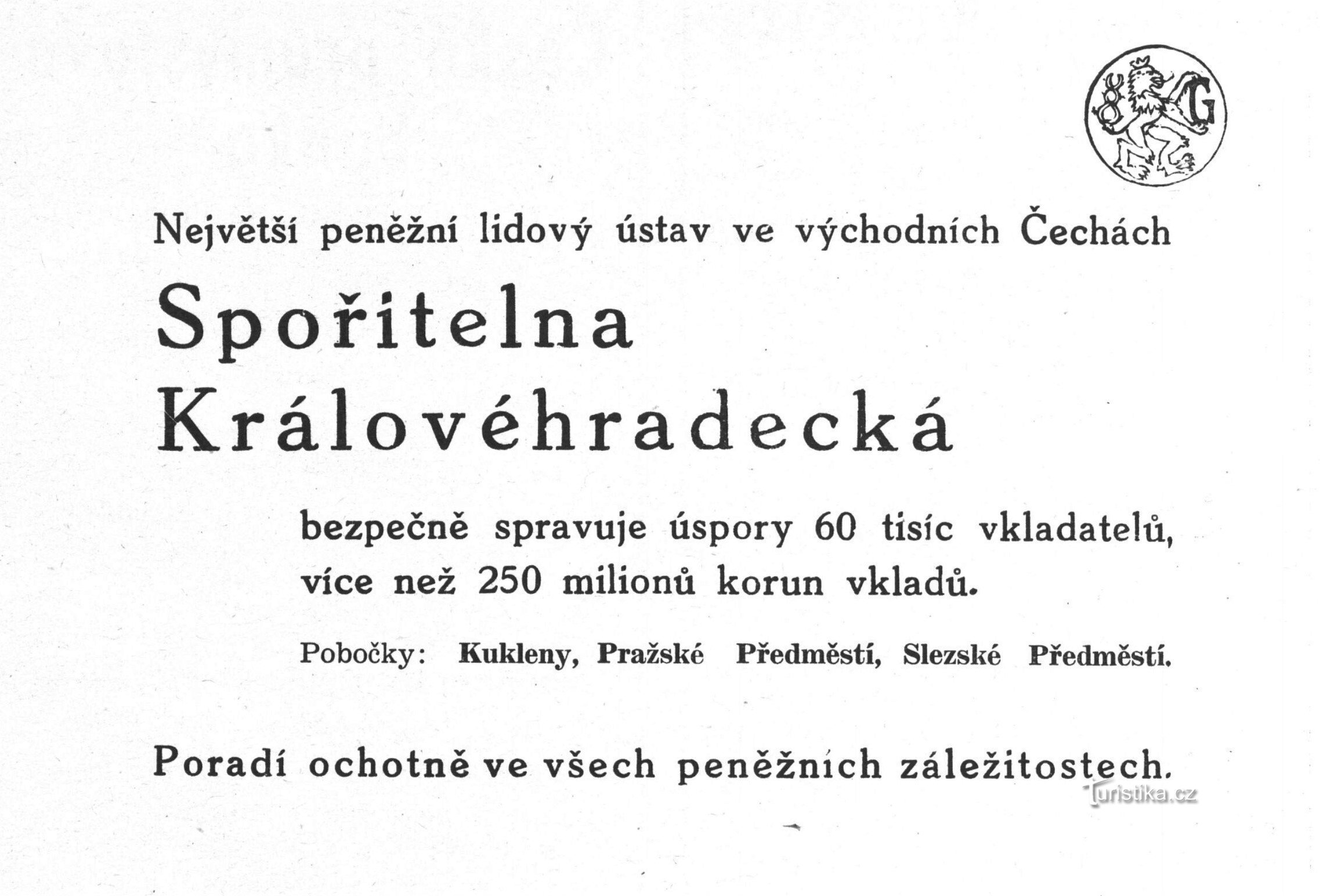 Další místa v okolí - Krátce z historie Spořitelny Královéhradecké