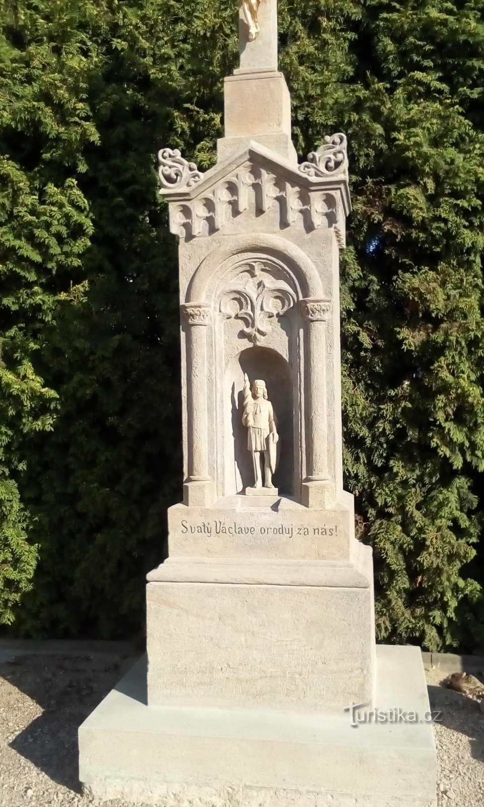 Kříž se nachází v centrální čássti obce u zastvky hned vedle pomníku padlým. Na kříži je samozřejmě Ježíš a pod ním se nachází sv. Václav doplněný nápisem:Svatý Václave oroduj za nás!