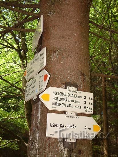 Lačnov je rozcestí červené a žluté turistické značky asi 2 kilometry západně od vesnice Horní Lomná a nedaleko severozápadního okraje horské osady Lačnov. Rozcestník je umístěn na stromě u křižovatky lesních cest a naproti němu je vybudováno zastřešené odpočinkové místo a to lavičky se stolem. Žlutá značka vede k rozcestí z obce Horní Lomná a pokračuje k vodní nádrži Morávka a podél jejího…