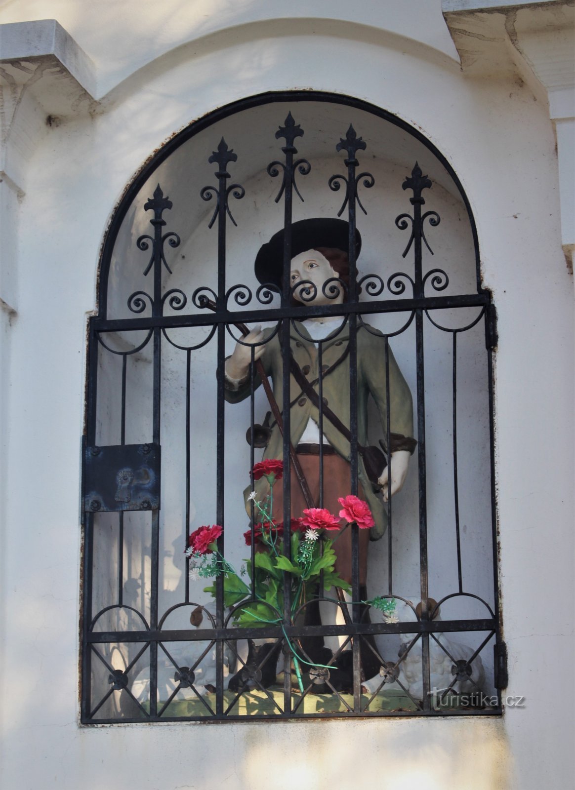 Poklona sv. Vendelína se nachází ve střední části obce v parčíku na křižovatce u místa zvaného Rasovna. Zdejší drobná stavba půlkruhového půdorysu s odstupňovaným soklem je přístupná dvěma stupni. V horní části poklony je půlkruhově zaklenutá nika, v níž je socha světce. Nika je uzavřena kovanou mříží a stěny niky jsou zdobeny hvězdičkami. Poklona je zastřešena a kryta zeleně glazovanými prejzy.…