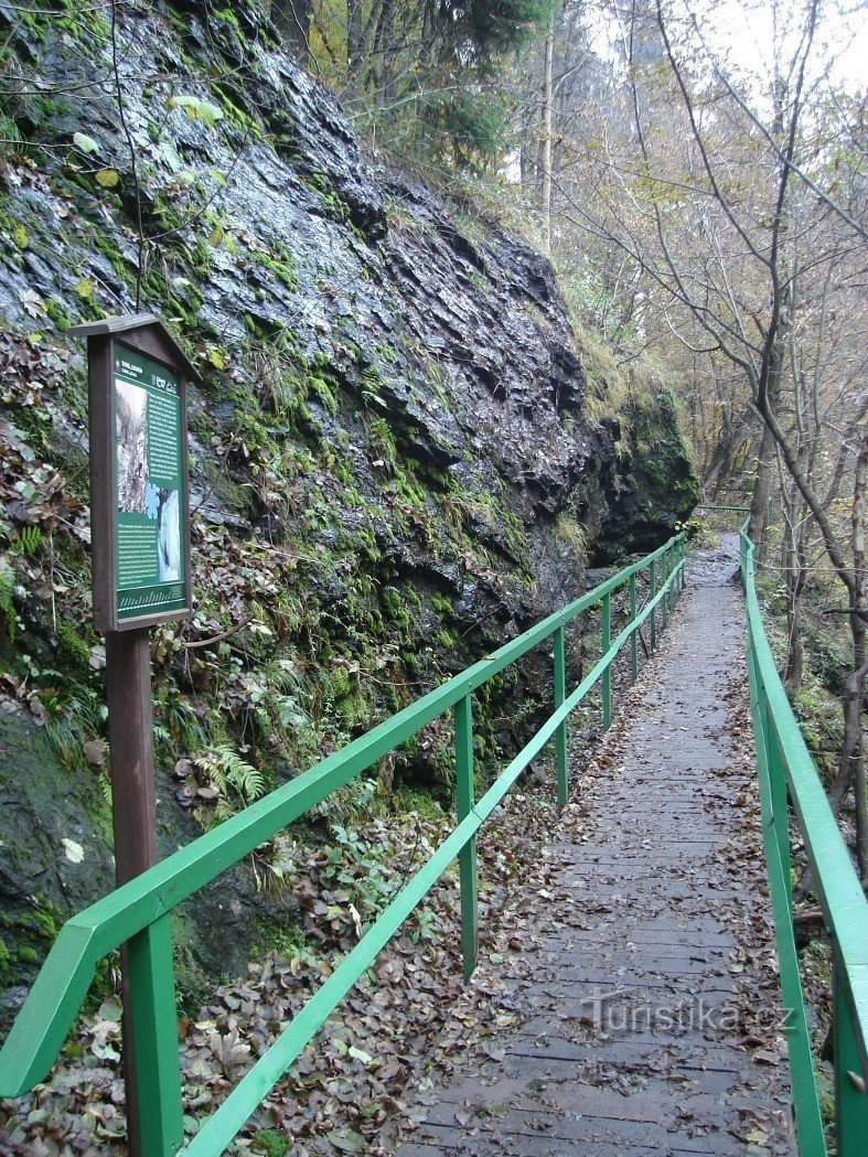 V zimních měsících, zvláště před blížícím se jarem, je Riegrova stezka na Semilsku bohatší o zajímavý ledopád. Ten vzniká na skalnímu převisu přirozeným procesem při kolísání denních a nočních teplot. když přes den teplota stoupá nad nulu a v noci přituhuje. Ledopád je přibližně 20 metrů široký a 10 metrů vysoký. Vytváří pod převisem dočasnou jeskyňku se zamrzlým jezírkem. Tvar ledopádu není…