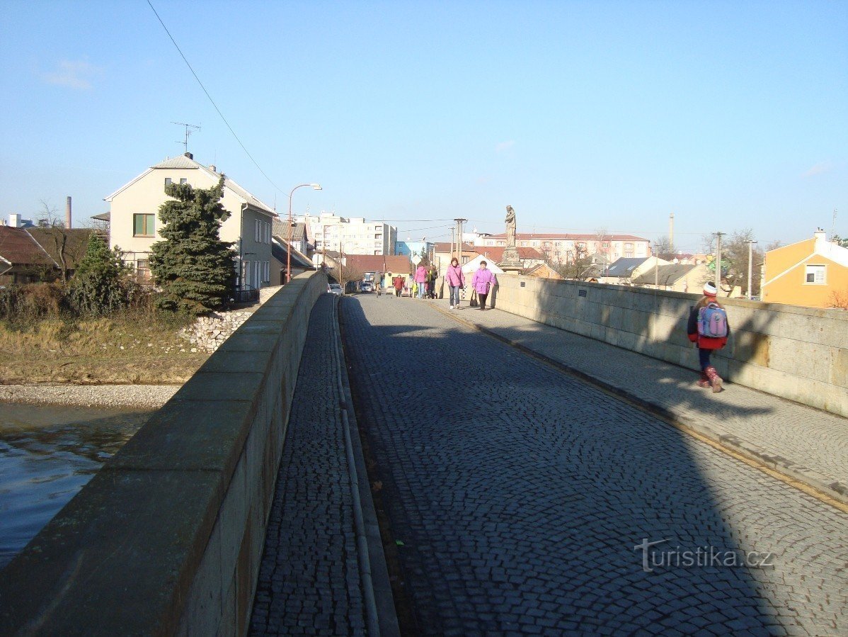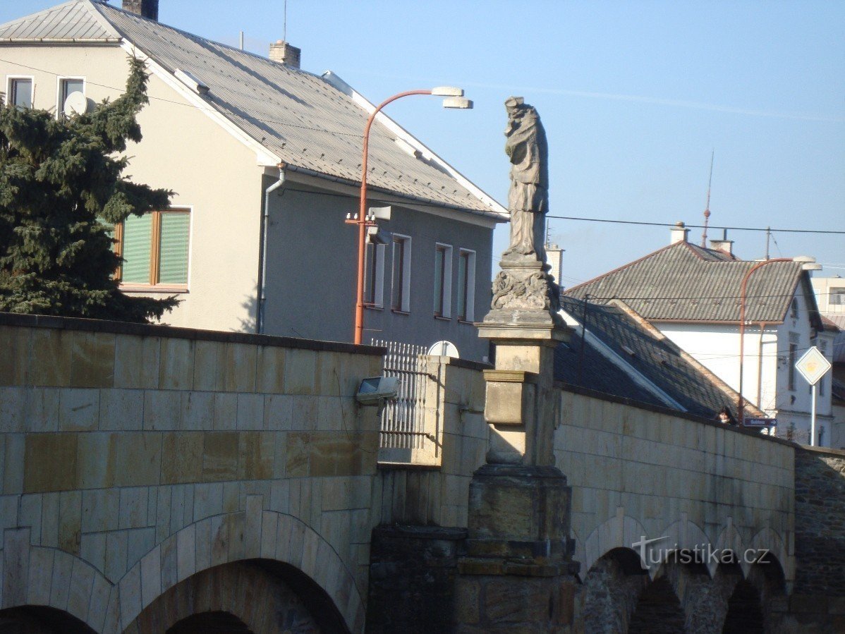 Uprostřed nejstaršího kamenného mostu na Moravě tzv. Svatojánského, postaveného kolem r. 1592, byla umístěna barokní Socha sv. Jana Nepomuckého s reliéfem jeho umučení, svržení z Karlova mostu do Vltavy od olomouckého sochaře Jana Sturmera z r. 1718. Socha i s mostem, kterému dala název, je zapsán ve státním seznamu nemovitých kulturních památek.