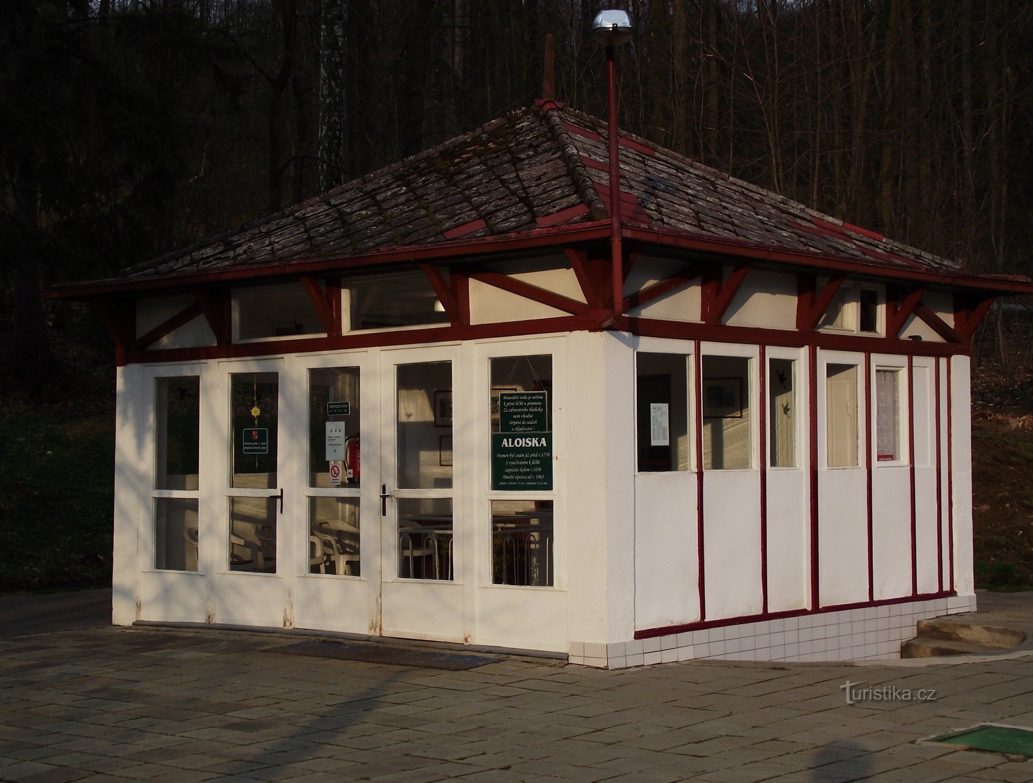 Luhačovice – pramen a pavilon Aloiska (Lesní pramen)
