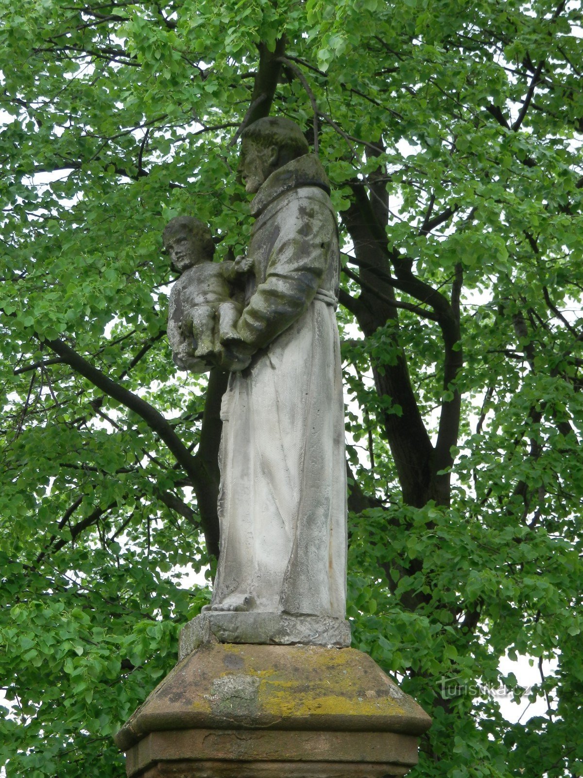 Již při příjezdu do Lysic od Černé Hory nás v poslední zatáčce před městysem, ve stínu několika starých lip, vítá kamenná socha sv. Antonína s Ježíškem v náručí.