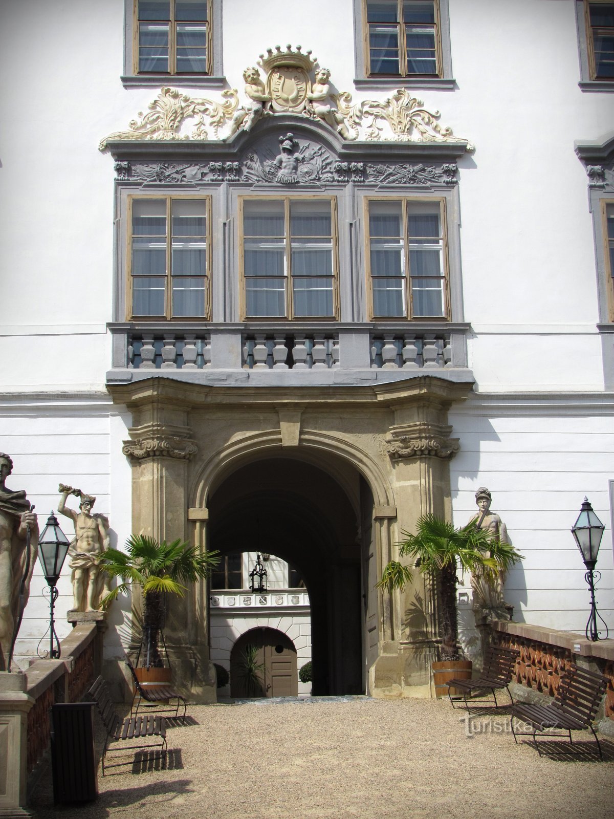 Panské sídlo v Lysicích nejprve bývalo vodní tvrzí a ta pak bylo přebudováno na renesanční vodní zámek. Dva vodní příkopy se zachovaly a své nepravidelné vyhlídkové plavby po nich dnes provádí miniregata elegantních vodních ptáků - labutí. Uměnímilovné návštěvníky při vstupu na první nádvoří asi mnohem víc zaujme bělostná masa zámku, jíž dali pozdější majitelé líbivější barokní podobu - jen ty…