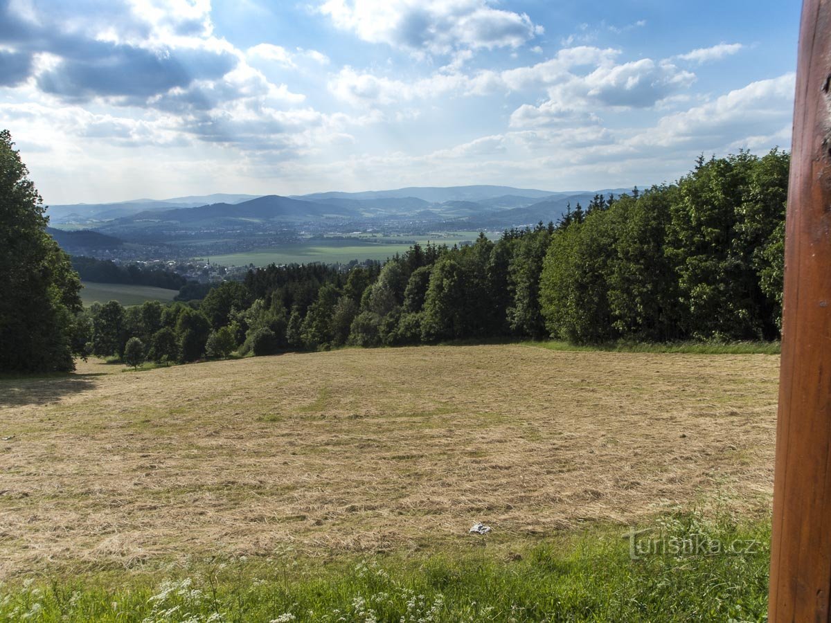 Sice nejde o žádný kruhový rozhled, přesto patří v okolí Šumperské kotliny k nejzajímavějším výhledovým místům. Díky silnici Nový Malín – Mladoňov snadno dostupná. Vyhlídka jen využívá průsek udržované louky, která dosahuje k silnici od úpatí kopce. Úsek je dlouhý asi 50–60 m, takže nakonec je k vidění vcelku zajímavý výřez ve směru zhruba na západ, kam směřuje svah kopce s názvem Kopka nad…