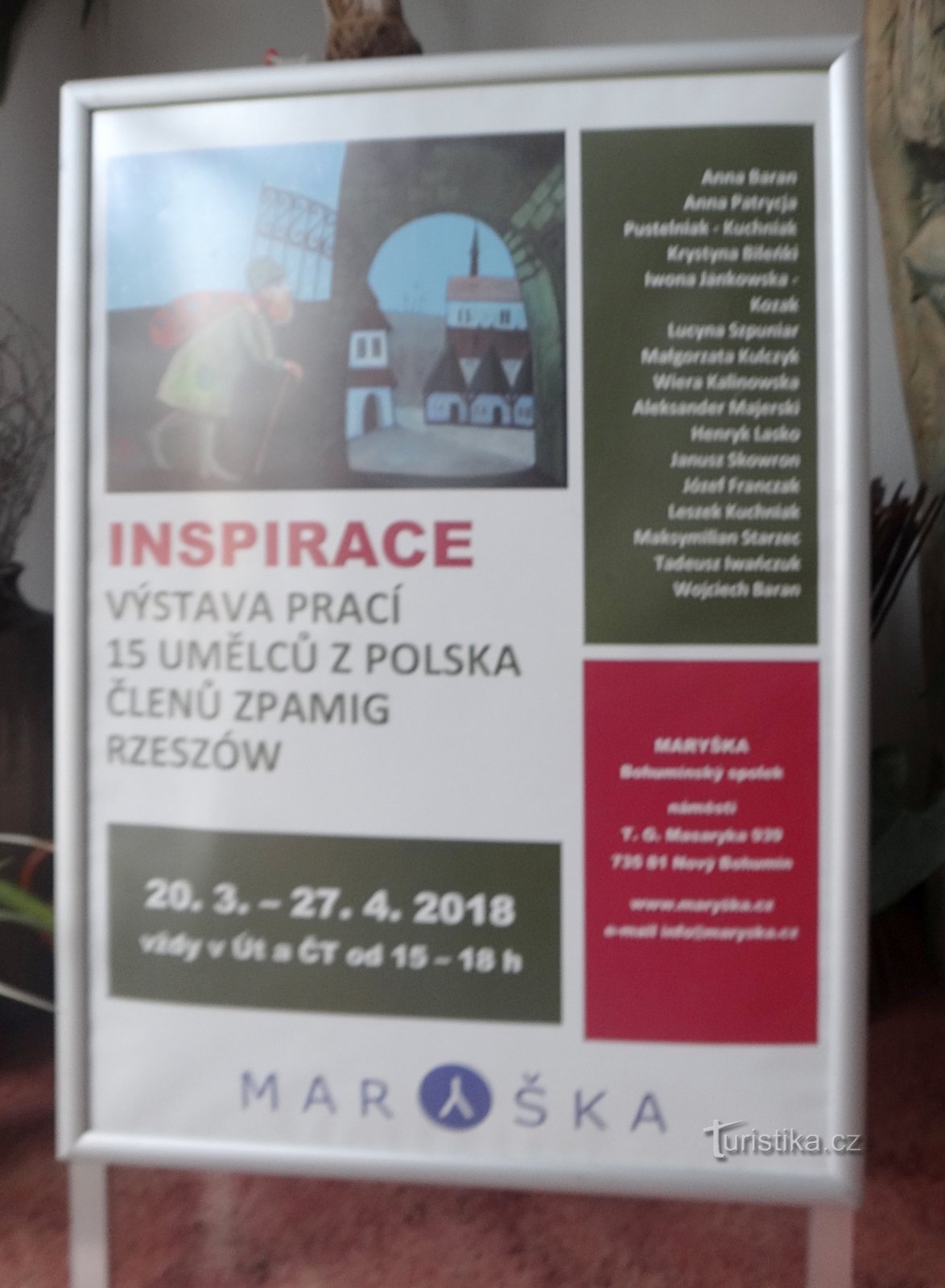 V Bohumíně na náměstí T.G.Masaryka má své prostory spolek Maryška, ve kterých se konají různé akce. Nyní se tam koná výstava prací 15 polských umělců sdružení ZPAMIC Rzeszów, pod názvem Inspirace. Někteří z umělců již v Bohumíně dříve vystavovali své práce, např. malířka Anna Baran nebo řezbář Alexander Majerski. Určitě stojí za shlédnutí, výstava potrvá do 27.4. Můžete se zde podívat i na…