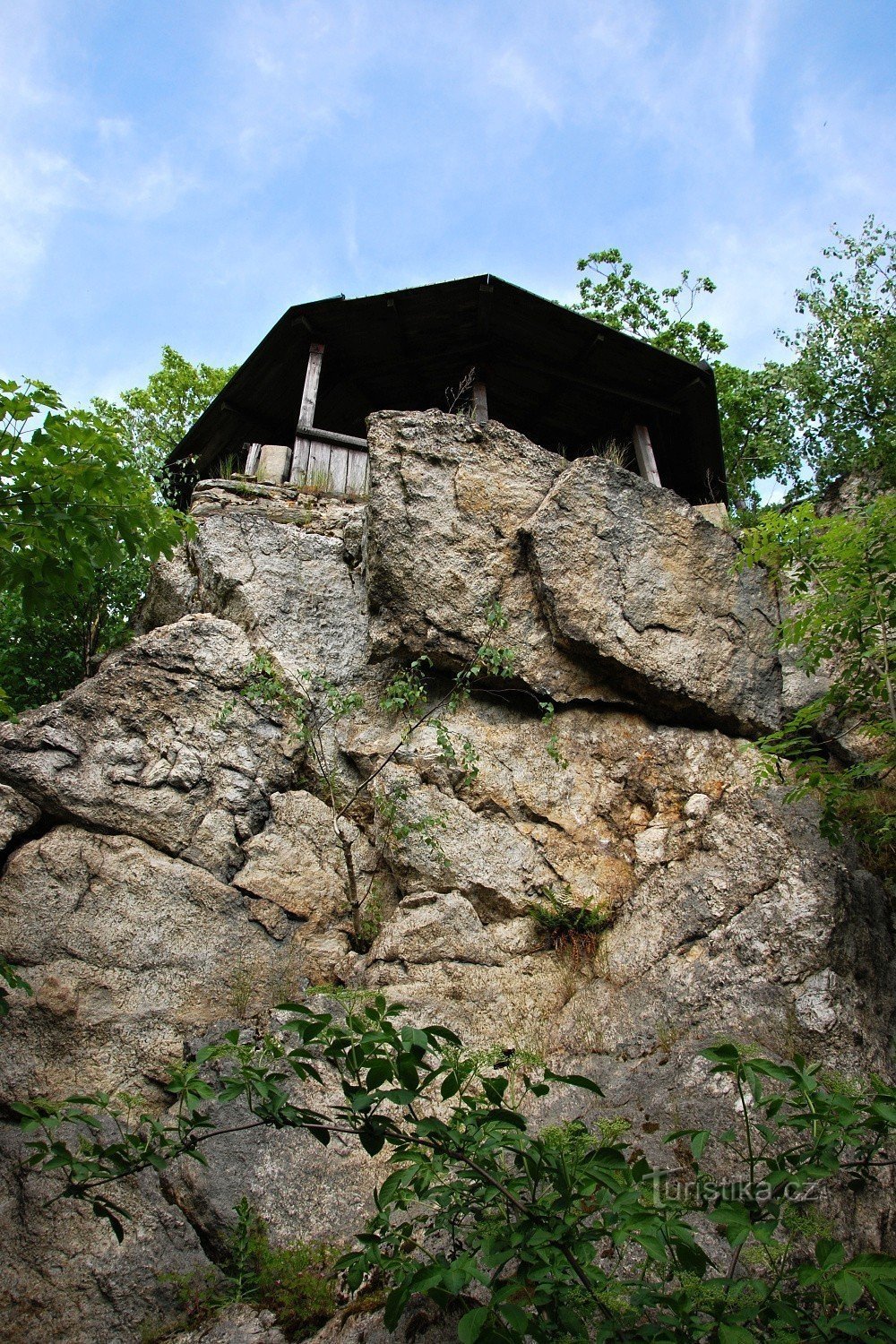 Na vrcholku skály je vyhlídkový altánek, který poskytuje…