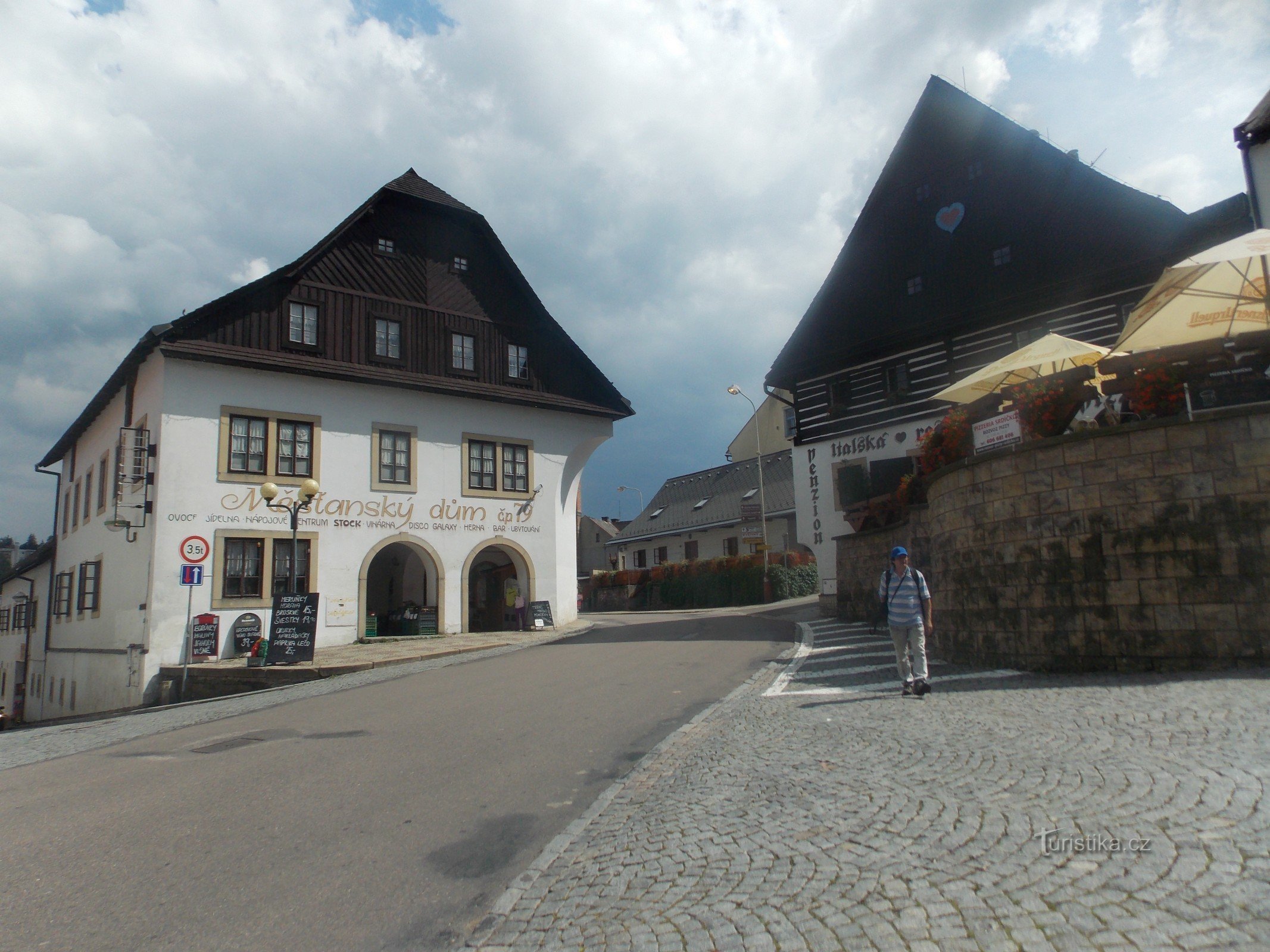 Mezi historickými domy na náměstí 5. května, v centru Jablonného nad Orlicí stojí Městský dům č. 79 s dřevěným štítem. Má spoustu využití. Je to podsklepená budova se dvěma nadzemními podlažími a dvěma podkrovími. Slouží i k ubytování turistů, najdete v něm v něm jídelnu, vinotéku, bar, disko salonky, obchody. V suterénu je průchod s jídelnou, kuchyní, chodbou, vinotékou, sklepem na sudové víno…