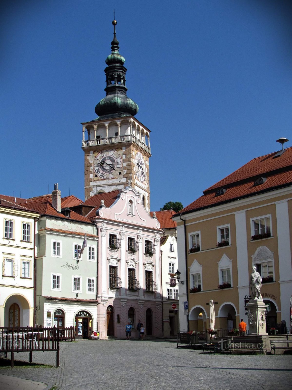 Při pohledu z hlavního mikulovského náměstí je tak utopen v okolní zástavbě, že je z něj vidět jen vysoká věž s ochozem. A protože ta se ze skály k nebi vypíná v těsné blízkosti zámku, může si neznalý návštěvník myslet, že je součástí pyšného feudálního sídla. Chrámovou loď kupodivu celou neuvidíme ani z maličkého Kostelního náměstí a jakýs takýs vjem o její podobě získáme až z vyhlídkových…