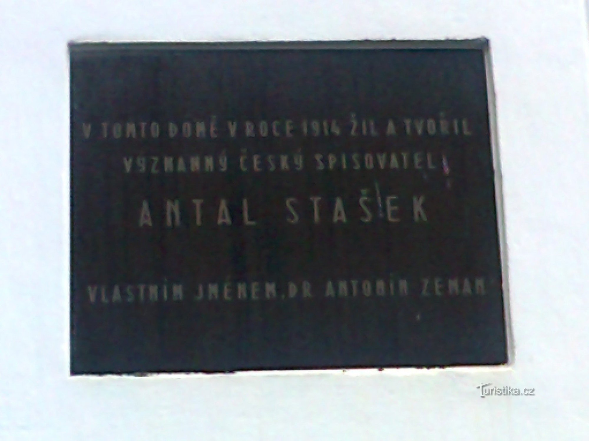 Pamětní deska Antala Staška (vlastním jménem Dr. Antonín Zeman) se nachází v domě na ulici U Brány 928/3 v Mohelnici. Spisovatel zde chvíli žil a literárně tvořil jen krátce. Ve svých 71 letech se musel, z existenčních důvodů, přestěhovat z Prahy - Krče, kde trávil svůj "důchodcovský odpočinek".