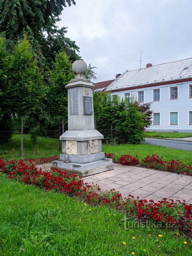 V centru, které tvoří typická hanácká náves najdeme jak výše jmenované pamětihodnosti, tak i jeden pomník. Jde o válečný pomník, který připomíná oběti a ztracené z Velké války, tak i z té…