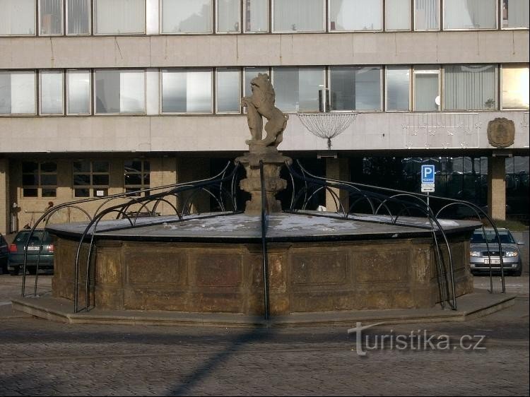 Ve starém Mostě na I. náměstí stála původně renesanční kašna z roku 1587 - dílo Vincence Petraše. Kašna byla zhotovena z oseckého pískovce vytěženého v kamenolomu na Salesiánské výšině. Ke kašně byla roku 1729 osazena Dietzova pískovcová plastika českého lva, vztyčeného na zadních nohách a předními tlapami přidržujícího kartuš se znakem města Mostu. Plastika lva byla několikrát od kašny oddělena…