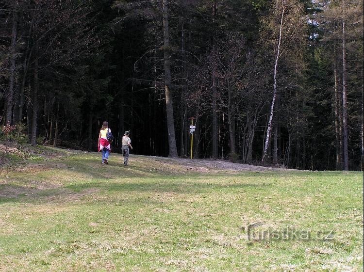 Rozcestí pod lesem nad osadou Na Písečné patřící k obci Vlčková. Křižovatka červené tur. trasy s modrou tur. trasou. Po červené dojdeme dolů do obce Vlčková nebo opačným směrem k zříceninám hradu Lukova a do Lukova. Po modré pak na Kašavu a Hrobic, opačným směrem na rozcestí Pod Kuželkem a Pod Oklukem na Holý vrch a dále do nitra Hostýnských vrchů.