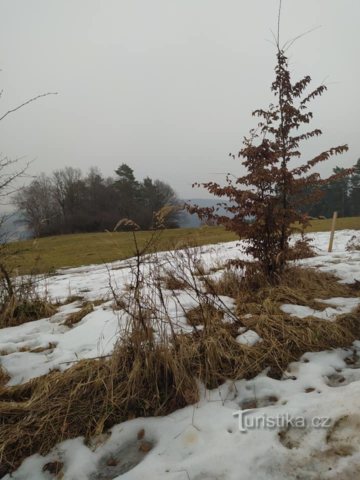 Na Sýkorce v únoru... Přístřešek a rozcestník