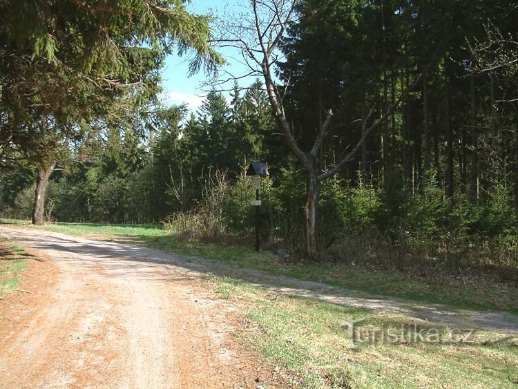 Rozcestí červené a žluté turistické značky. Nachází se pod vrcholem Špičák, asi 2 kilometry západně od Městečka Deštné v Orlických horách. Rozcestí se nachází na konci třešňové aleje na lesní a polní cestě.