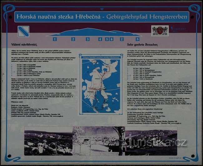 Naučná stezka Hřebečná si klade za cíl přiblížit pestrou historii i současnost této horské osady, historicky jednoho z nejvýznamějších středisek dolování cínu v ČR.