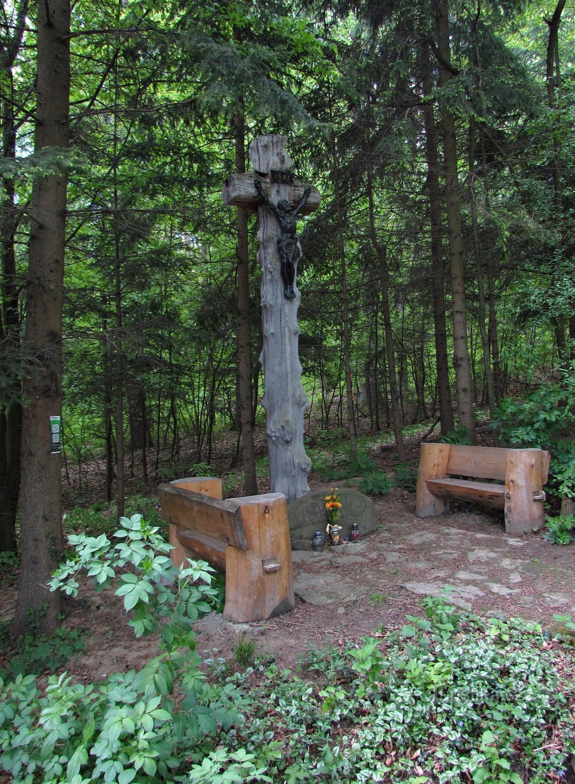 Při putování minipohoříčkem Chřiby můžete narazit na poměrně unikátní sakrální pamětihodnost, to ale musíte kráčet po lesní asfaltce bez značení od tur.rozcestí U Mrazíka (zde se spolu setkává žlutá a zelená trasa) po silničce k nedaleké Nové Dědině. Za výraznou zákrutou uvidíte v mírném stoupání zajímavý dřevěný kříž se soškou černého Krista. Soška je zhotovena z černé litiny, proto jej místní…