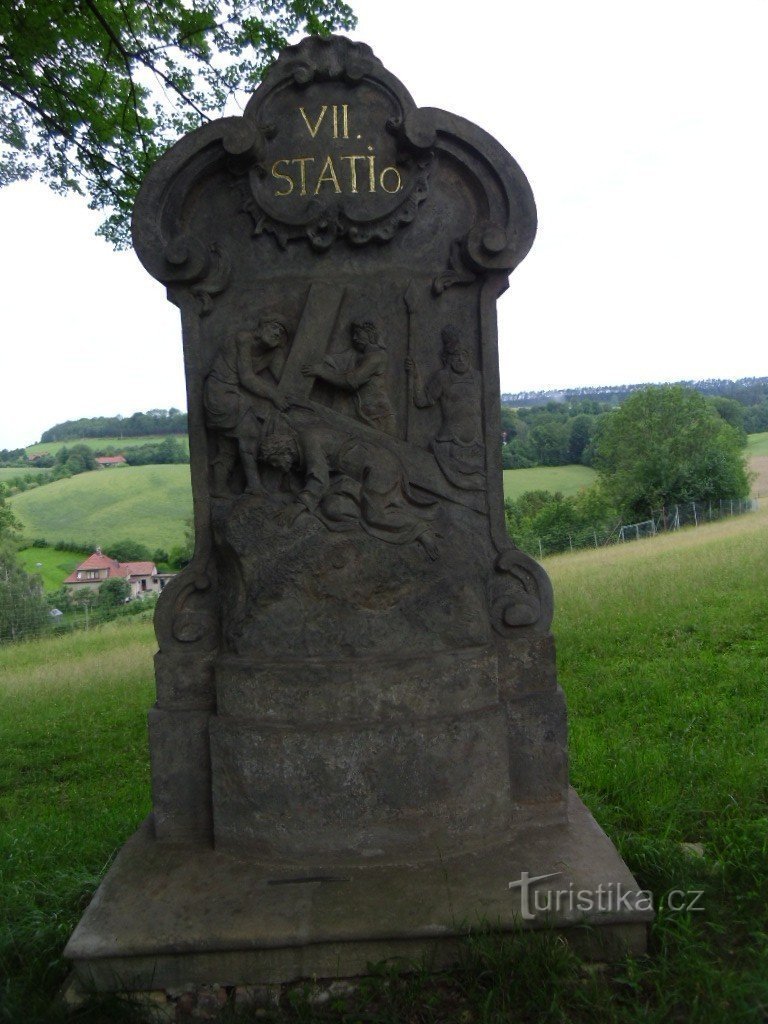 Unikátní rokoková Křížová cesta, kterou tvoří 14 zastavení (dvanácté zastavení je dřevěný kříž), vytesaných do pískovcových ořímsovaných hranolů, byla zřízena roku 1767 nákladem 500 zlatých hraběnkou Barborou Chamaré. Vede od kostela Jakuba Většího k bývalému zámku (do současné doby se dochovalo jen pár křovím zarostlých zdí). Křížová cesta se dnes nachází v dančí oboře, takže při výstupu na…