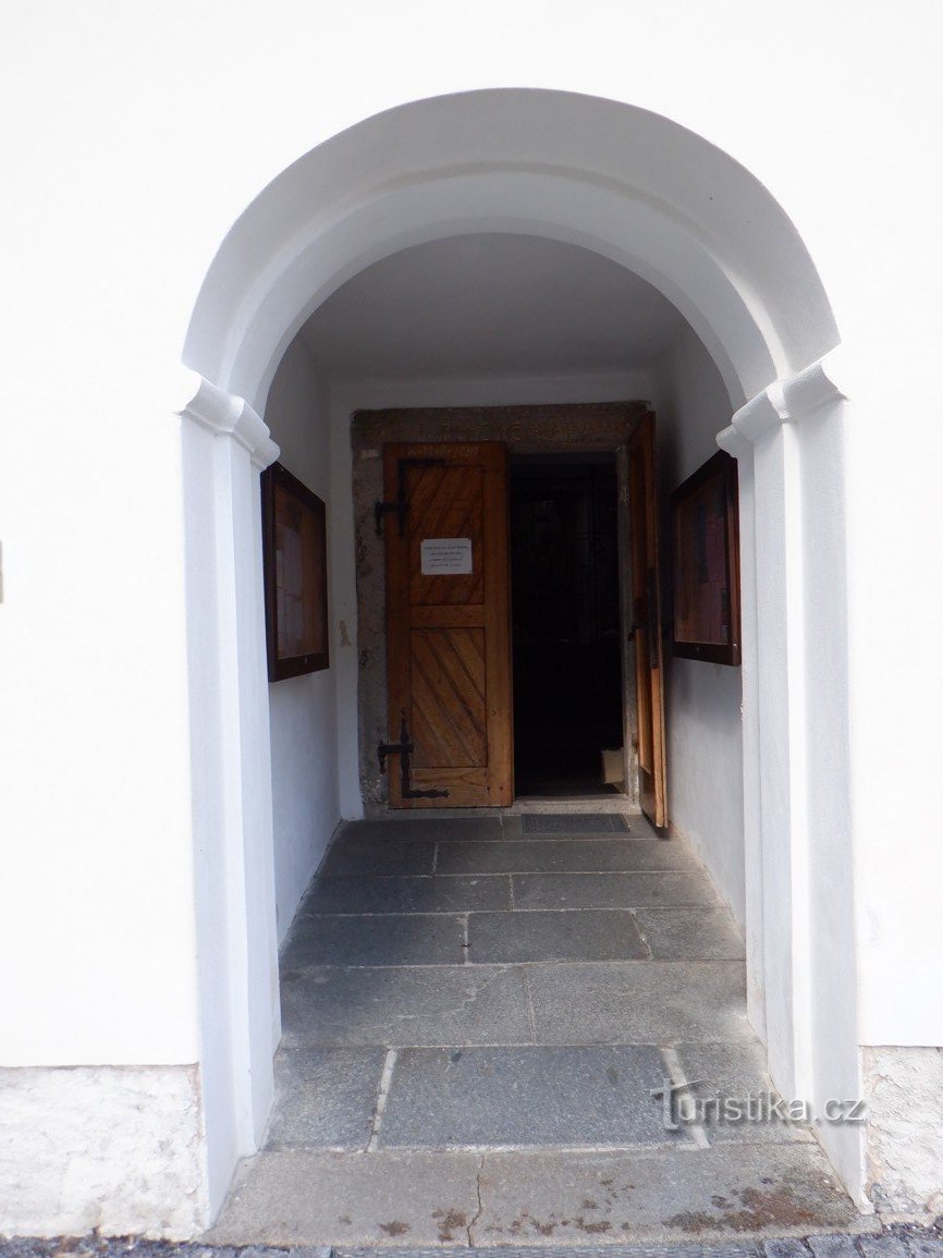 Zvonice byla dostavěna až v roce 1777. Hlavní oltář – obraz Panny Marie je…
