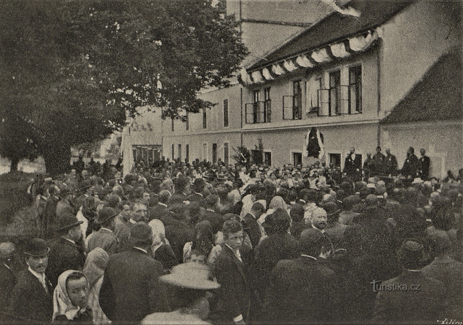 Odhalení pamětní desky JUDr. Juliu Grégrovi v Březhradě v roce 1898
