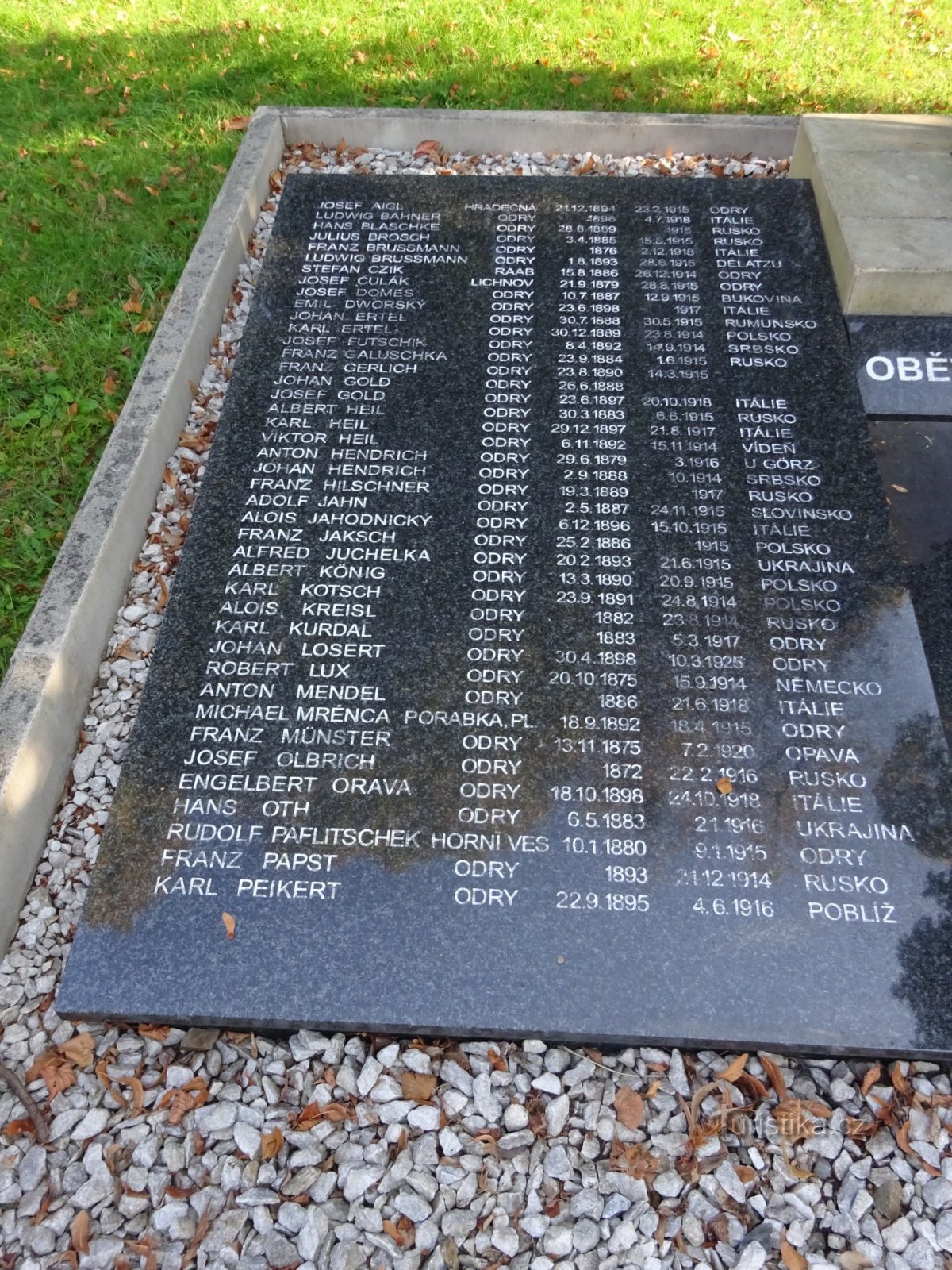 Další místa v okolí - Odry - pomník padlým v I. světové válce