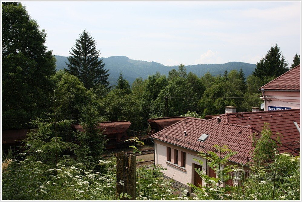 V Hojsově Stráži je dost penzionů a chat, a tak, pokud byste se tu octli na dovolené a chtěli se jen tak lehce projít, dám vám tip. Začneme třeba u hotelu Na Stráži (foto 1). Po modré značce sejdeme po silnici k její pravotočivé serpentině, lesem spadneme k další silnici a po ní vlevo dojdeme k nádraží Hamry - Hojsova Stráž (foto 2). Na rozcestníku (foto 3) si vybereme zelenou značku směr…