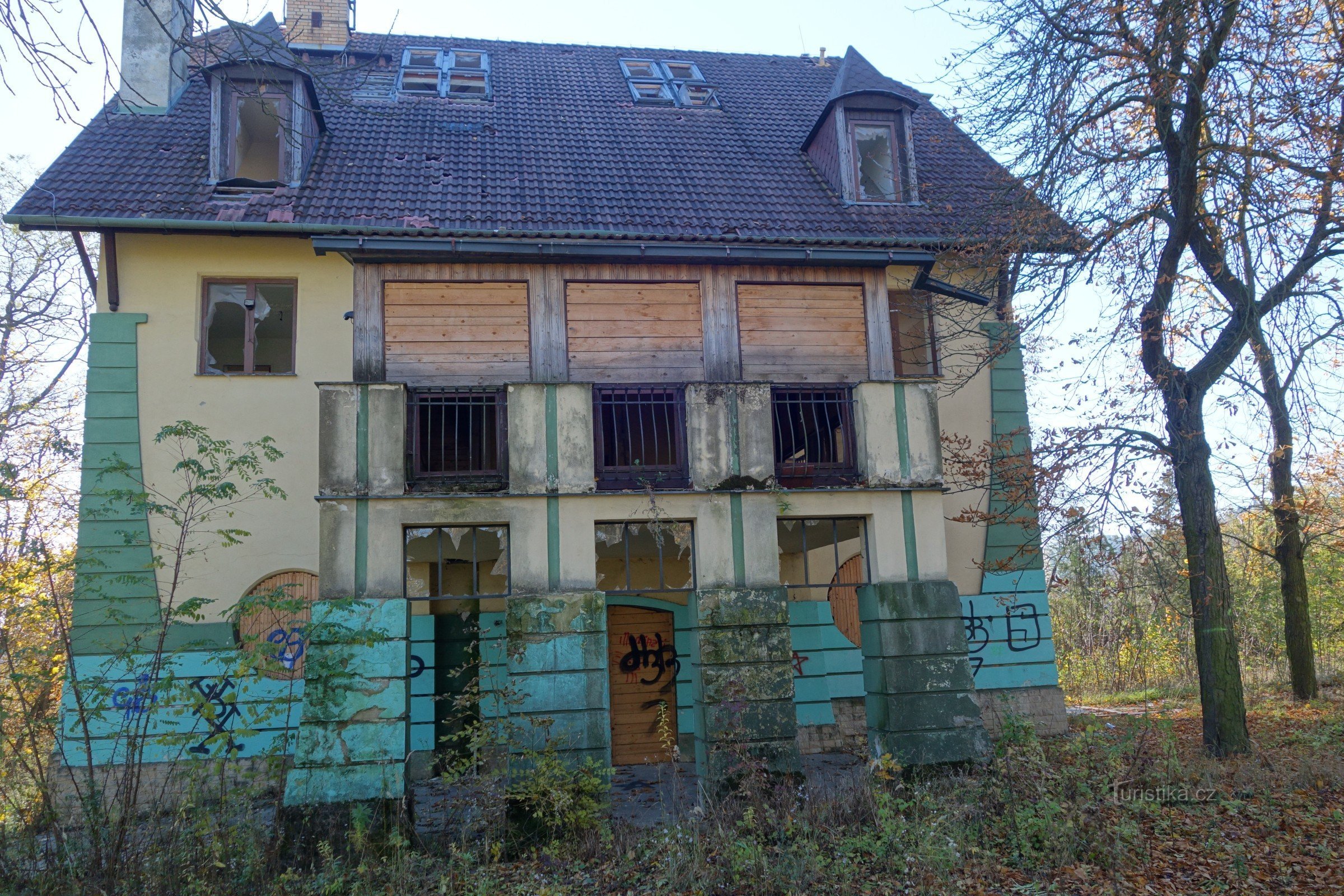 Po modré kolem pisáreckého tunelu. Uvidíme Pisárecký splav, Hošnovu vilu, výstavbu Bohunic a podzimní Rivieru.