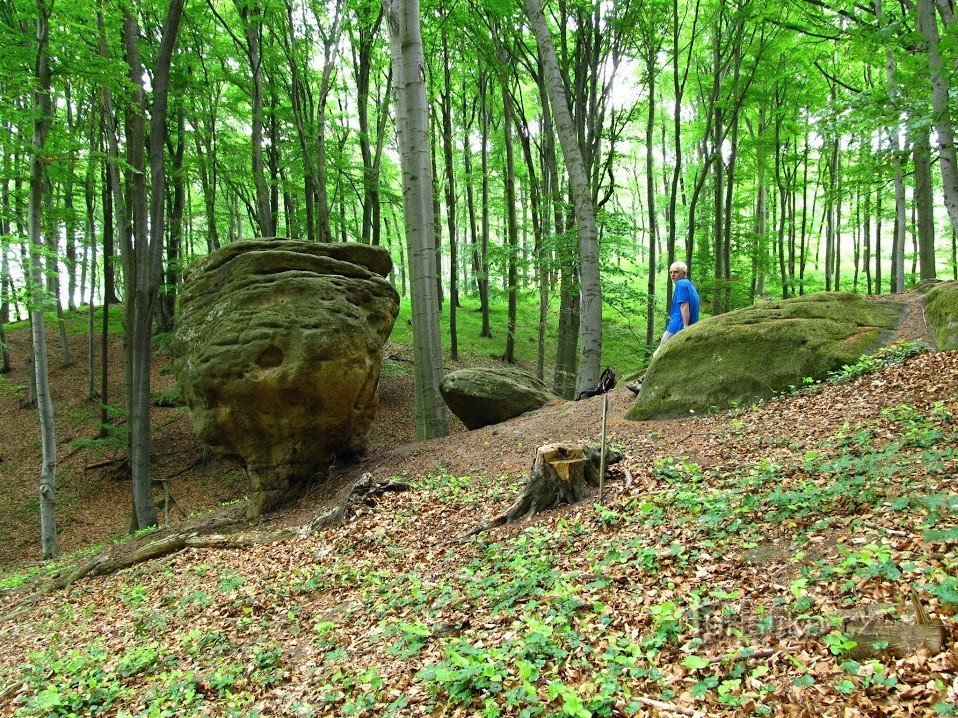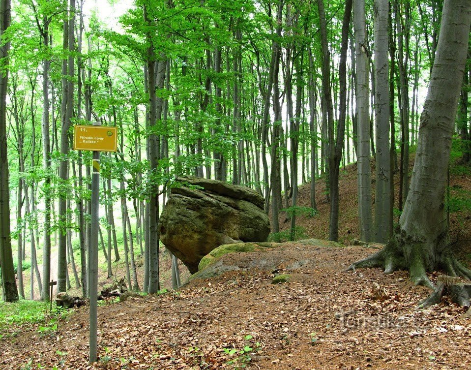 Vyrazíme z Bohuslavic, místní části Kyjova, dobře dostupných vlakem i autobusem. Od železniční stanice nejprve vystoupáme loukou po červené pěší značce nad obec do lesa a pokračujeme bukovým lesem k rozcestí u odbočky ke skalnímu útvaru Kalíšek. Ke Kalíšku je to jen 200m, poté se vrátíme zpět na červenou značku a pokračujeme pod vrchem Velká Ostrá k významnému rozcestí na Zavadilce. Odtud sejdeme…