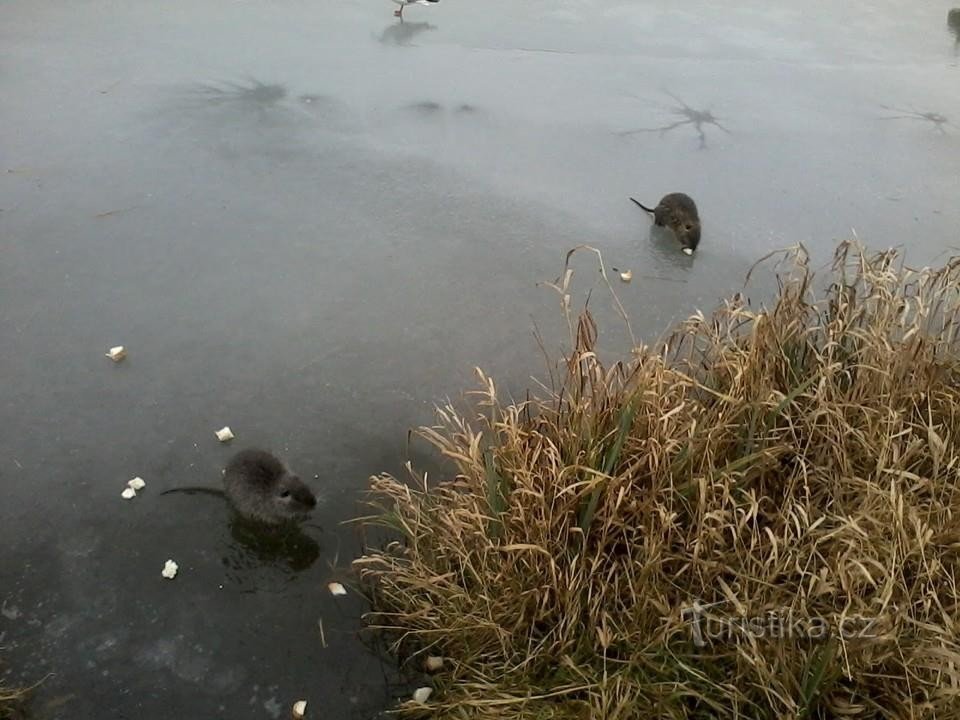 A jak na ně? Prostě vezměte trochu starého pečiva a jděte krmit přítomné kachny, někdy i labutě a racky. Ondatry jsou schované v rákosí při břehu a…