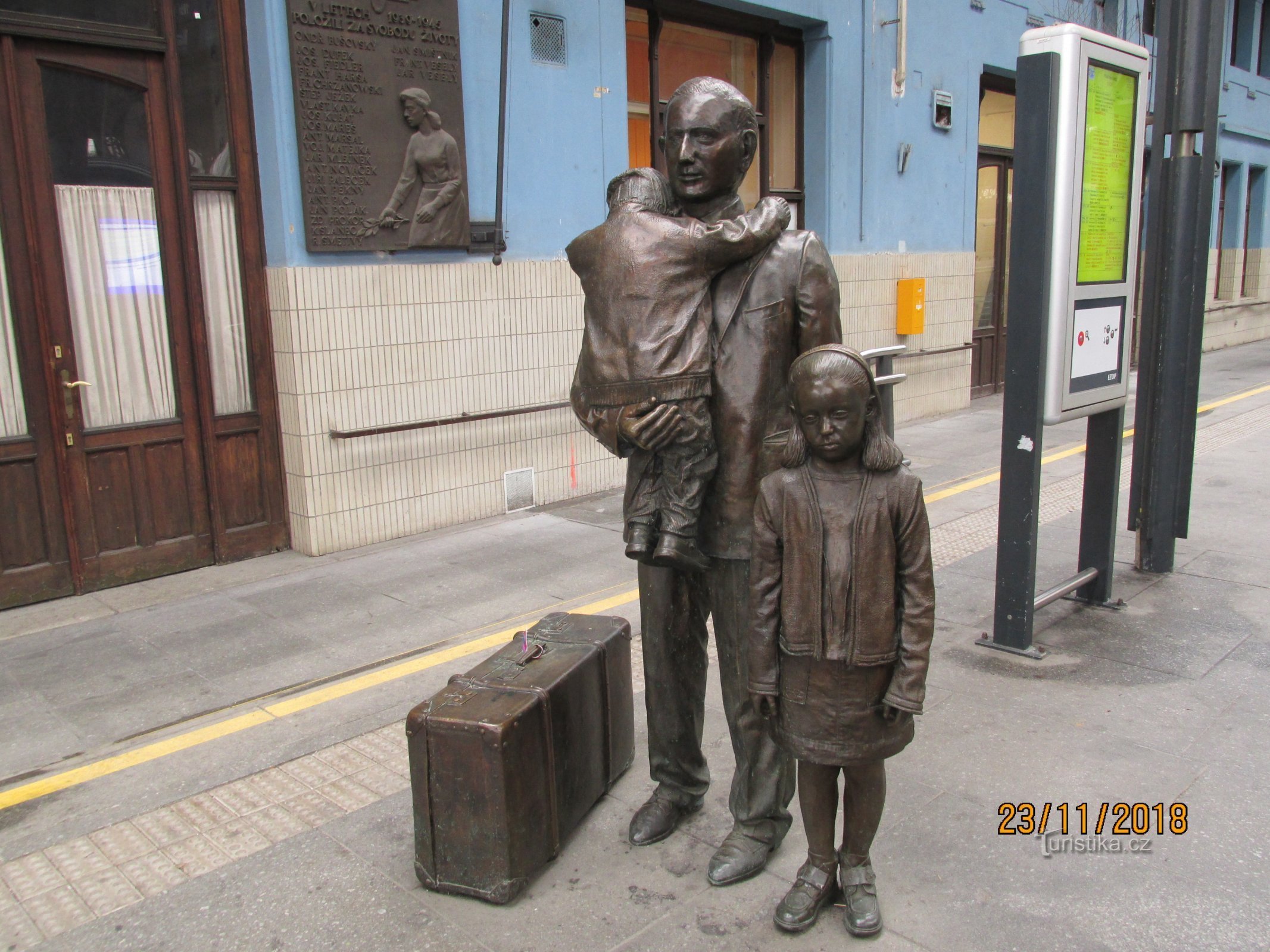Text na pamětní desce: Památník rozloučení je symbolem odvahy a lásky všech rodičů, kteří v letech 1938 a 1939, bez ohledu na vlastní osud, posadili své děti do vlaků, se slzami v očích i srdcích jim zamávali a poslali je do bezpečí, aby jim zachránili život. Většina rodičů zahynula během Holokaustu.