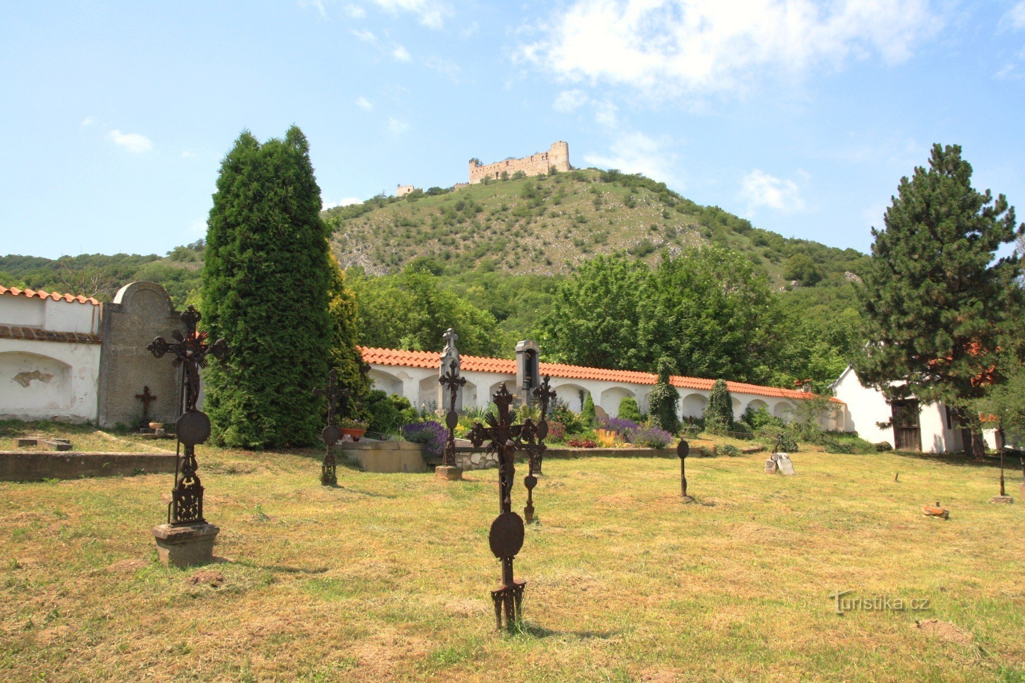 Zajímavou památkou obce je starobylý barokní hřbitov, který je obehnán vysokou zdí se čtyřmi válcovitými nárožními věžicemi, které jsou kryty prejzovými taškami. Vstupní brána hřbitova má volutově tvarovaný štít s křížem. Nachází se na západním okraji obce v ulici Na Cimbuří. První zmínka o zdejším hřbitově se připomíná již roku 1582, jednalo se tehdy o hřbitov nacházející se na návsi mezi…