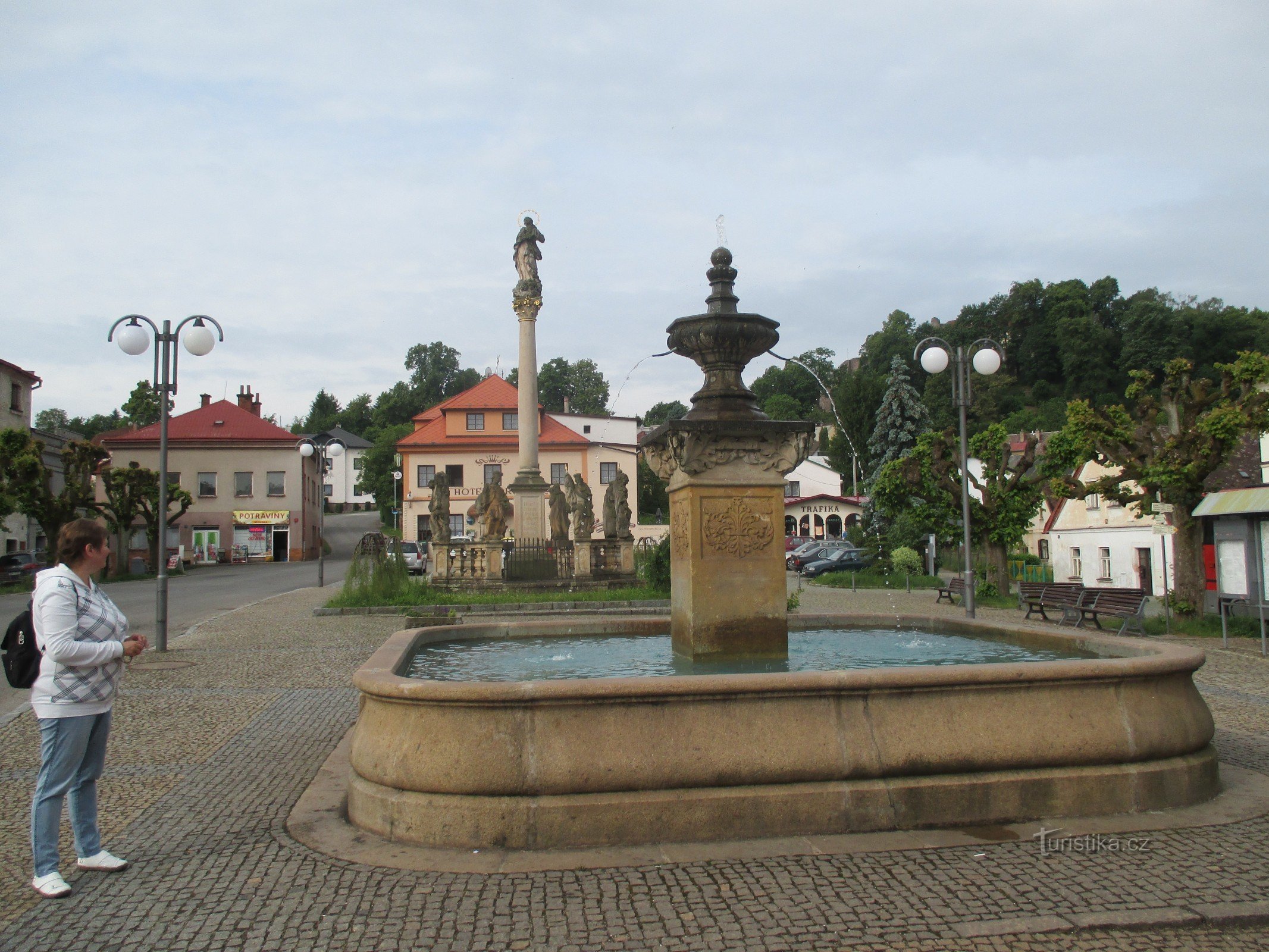 Rozcestí na náměstí v Pecce je kižovatkou několika turistických tras.